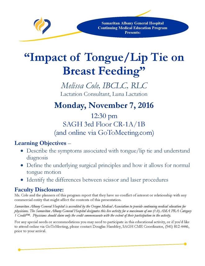 “Impact of Tongue/Lip Tie on Breast Feeding”, by Melissa Cole, IBCLC, RLC